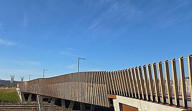 L’ouvrage d’art Niki de Saint Phalle est désormais terminé. Il permet le franchissement nécessaire au passage de la ligne TEOR T5 et participe à l’amélioration de la desserte du quartier Flaubert. Cette infrastructure soutient le développement des mobilités durables et encourage le report modal en proposant une alternative aux déplacements en voiture.