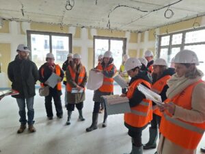 Visite de chantier avec Charlotte Goujon , maire et les responsables de l’inspection d’académie.